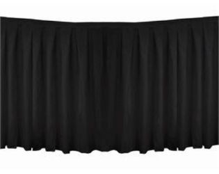 Improve the appearance of your stage with our range of stage skirting options. Ideal for concealing equipment and creating a seamless backdrop, our high quality black stage skirting is available in various sizes. The skirting is heavy duty polyester and has box pleats with velcro backing, and comes with velcro for clips and additional velcro at ends for ease of joining lengths.