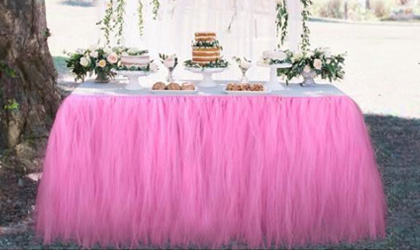 Add a touch of magic with our tulle table skirting. Perfect for weddings, baby showers, and festive celebrations, tulle skirting brings a soft, dreamy feel to your tables. Available in colours that can be matched with your event's palette.