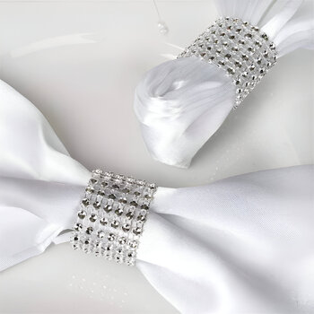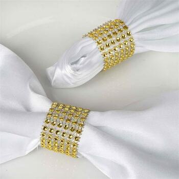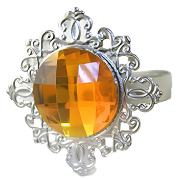 12pk Napkin Rings - Silver with Amber/Gold Diamond Ring Style