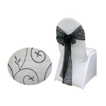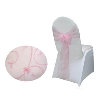 Our Embroidered Chair Sashes collection, featuring a dainty leaf-motif embroidery, combines the transparency of organza with the shiny, smooth texture of satin; creating a standout look for your wedding or special event. With an avant-garde design exclusive to our range, these sashes offer a unique and sophisticated touch that stands out in the market.