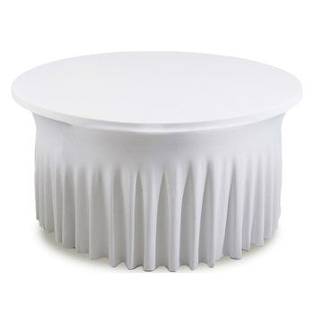 Lycra, also known as Spandex, is a great option for fitted table covers; ensuring your tables look smooth, sleek and modern. The incredibly flexible spandex material stretches over the tabletop to cover the entire table and legs so the cloth doesn’t hang over the sides like traditional covers. However, if you like the 'hang' of more traditional tablecloths (without the ironing!) our range of lycra tablecloths also includes a variety of semi-fitted lycra tablecloths. We offer a large range of colours, shapes and sizes for you to choose from.