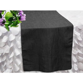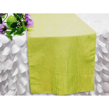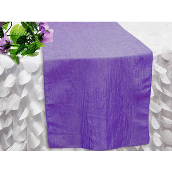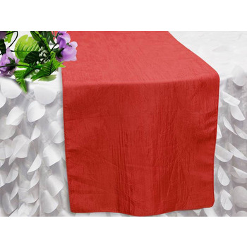 Immerse yourself in the textured world of crinkled taffeta table runners, available in a wide array of colors to perfectly complement the decor of your wedding or special event. These runners, with their distinctive crinkled texture and refined sheen, provide a unique and stylish option for enhancing your table settings.