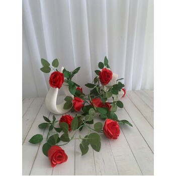 Embrace the beauty of roses without the high price tag with our 2.2m Red Rose Garland. This budget-friendly garland features 10 bold red fabric rose heads (approximately 8cm diameter each) interspersed with delicate leaves, adding a touch of romance to any occasion.