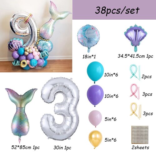 30pcs - 3rd Birthday Mermaid Themed Birthday Set