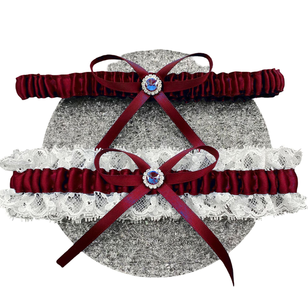 Burgundy Bridal Wedding Garter - 2pcs Set