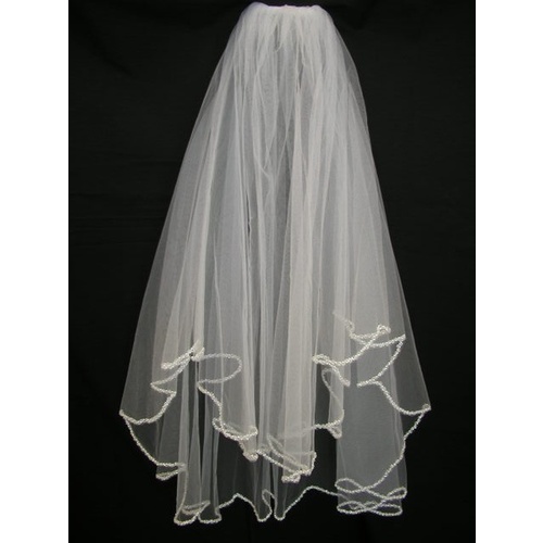 75cm Ivory Pearl & Bead 2 Tier Wedding Bridal Veil - V0538W1-1I