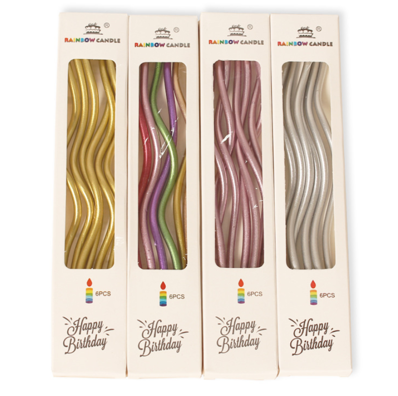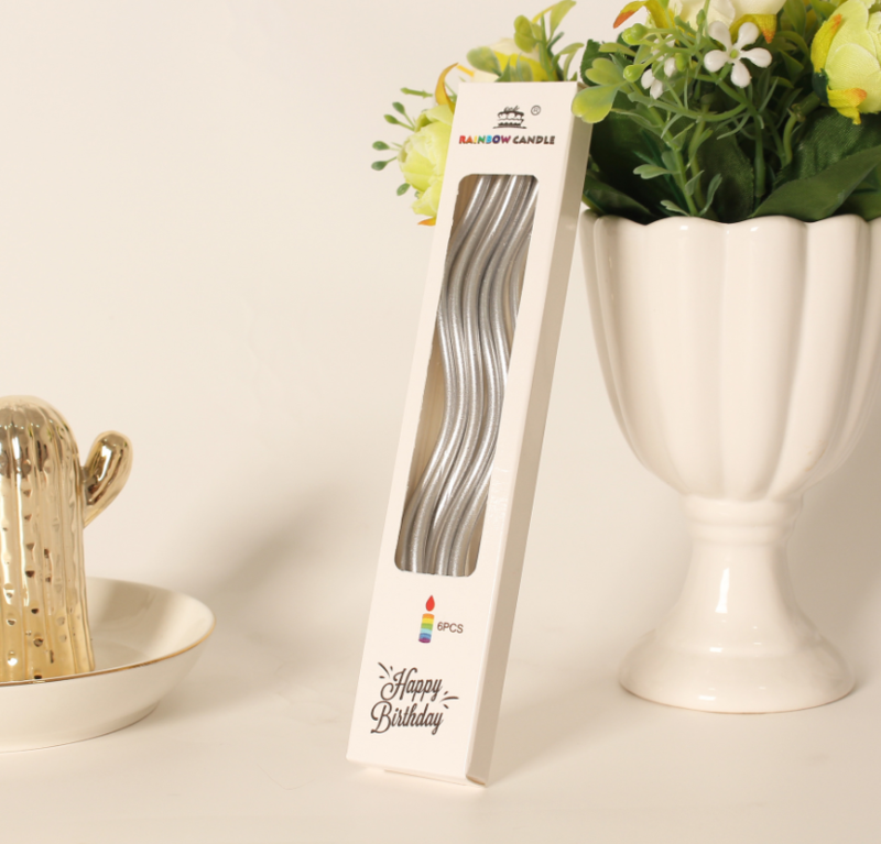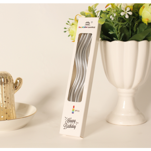 6pk Metallic Silver Twisty Candles Birthday Cake Candles