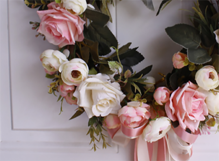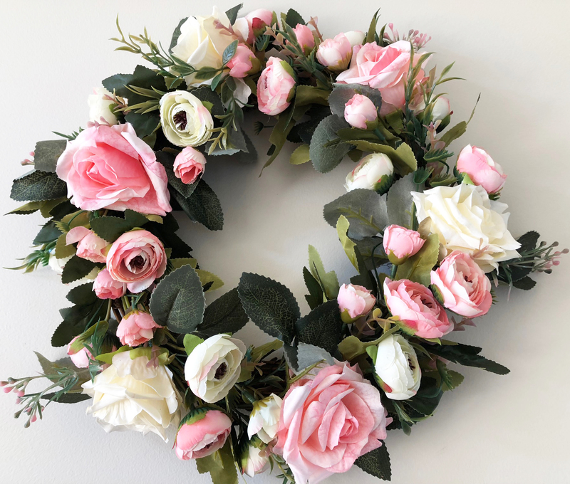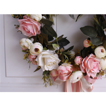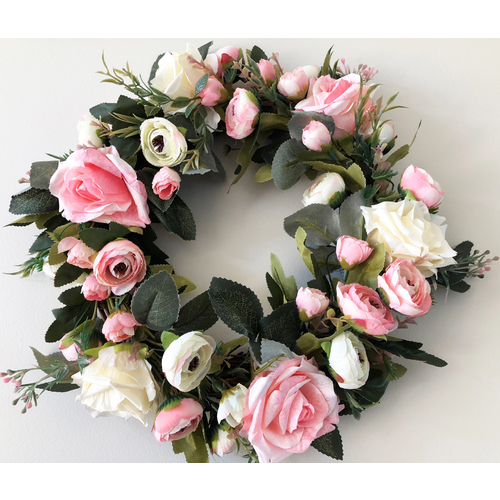 35cm High Quality Wreath - Mauve Pink/Cream Roses