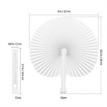 - Dreamy Wedding Scene: Create a dreamy and romantic atmosphere at your wedding with our White Paper Wedding Fans. They add a touch of elegance and sophistication to your décor, making your special day even more memorable.