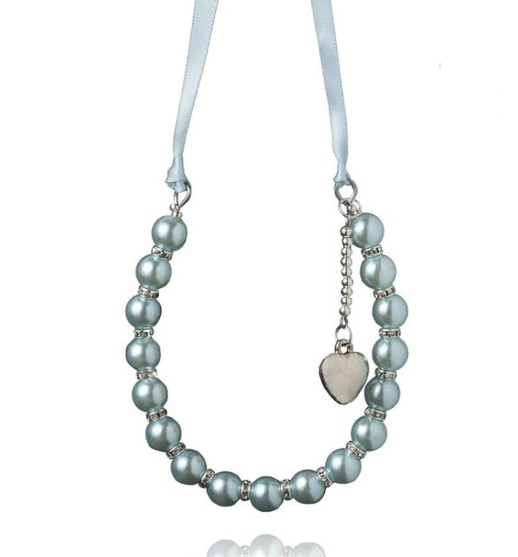 - Modern Design: Made from blue pearl beads with a silver charm.
