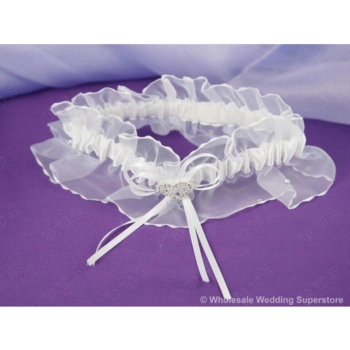 Garter Wedding - Rhinestone & Heart - White CLEARANCE