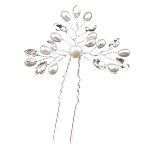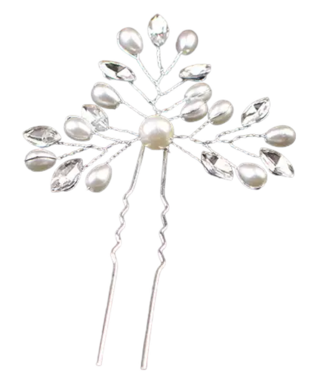 Enhance your bridal hairstyle with our exquisite Bridal Hair Pin, adorned with lustrous pearls and sparkling rhinestones. This stunning accessory is designed for the bride seeking a touch of timeless sophistication and a dash of glamour on her special day.