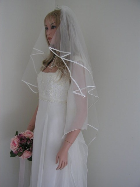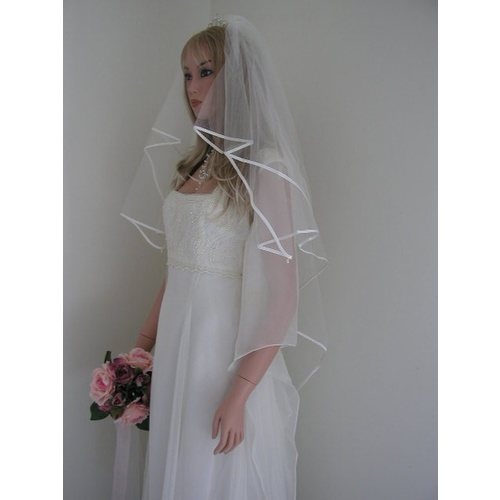 115cm Ivory Satin Edge Crystal Drop 2 Tier Veil - V054W2-23DW