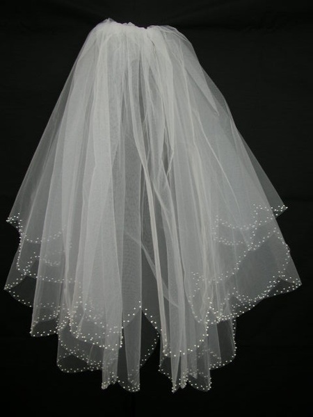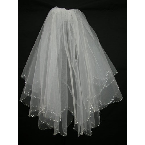 70cm White Pearl 2 Tier Wedding Bridal Veil - V0523W2-1W