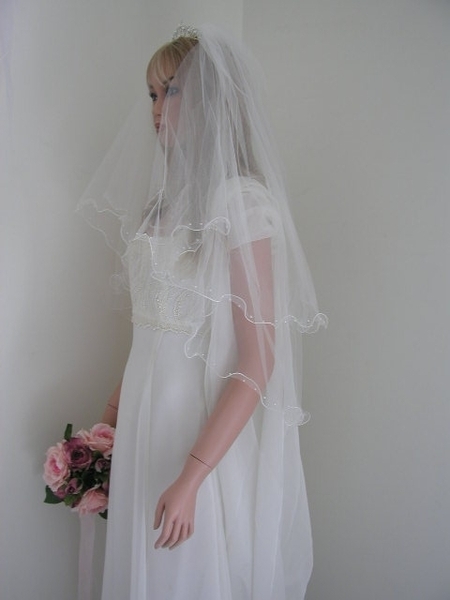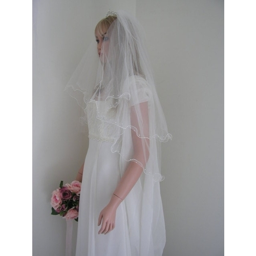 80cm White Curly Large Pearl 2 Tier Veil - V0404W2-1W