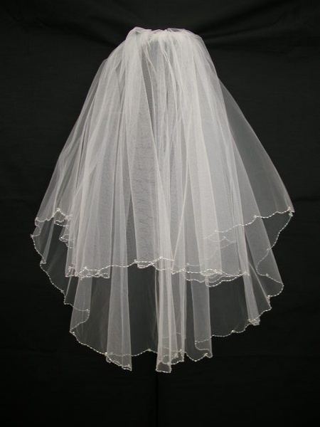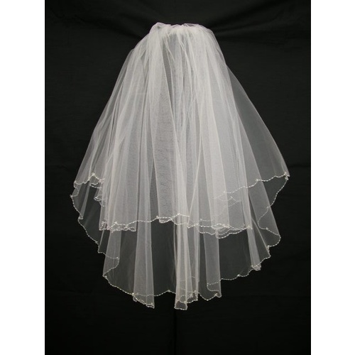 60cm White Crystal & Bead Edge 2 Tier Wedding Bridal Veil - V0513W1-1W