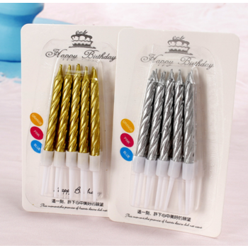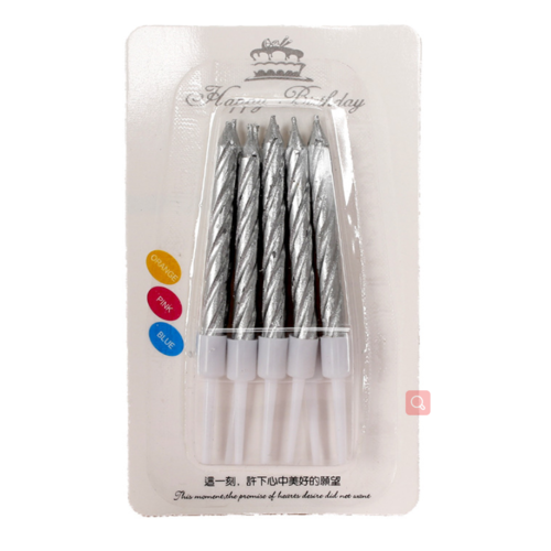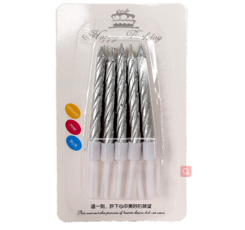 10pk Metallic Silver Birthday Cake Candles with cups