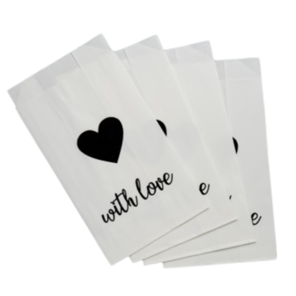 Don't let your guests miss out on the joy of taking home a slice of your wedding cake. Order our Solid Black Heart Wedding Cake Bags today and add a touch of elegance to your celebration.