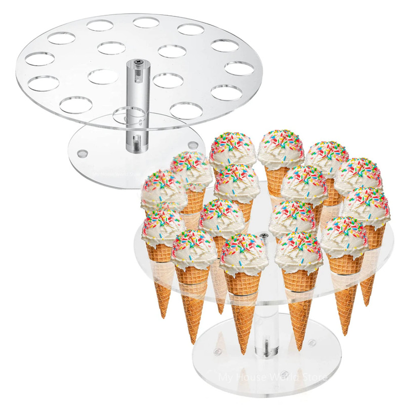 Enhance your wedding ambiance with our exquisite Round Acrylic Rose Petal Cone Stand, meticulously designed to showcase your rose petal cones in a stunning arrangement for your esteemed guests. With 16 carefully crafted holes, this stand offers a harmonious blend of style and practicality, creating an enchanting display that adds an extra layer of sophistication to your celebration.