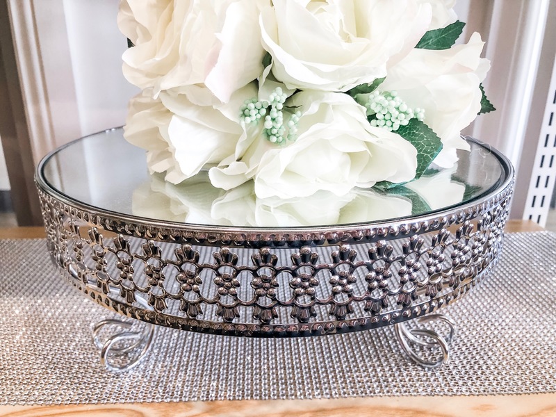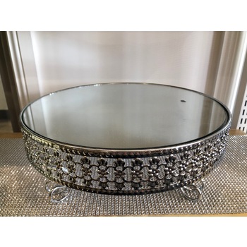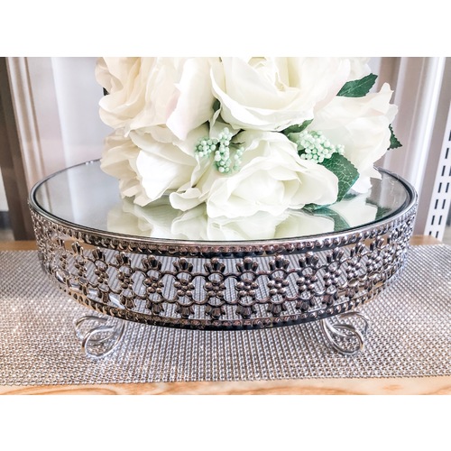 30cm Round Raised Mirror Top Cake Stand - Silver