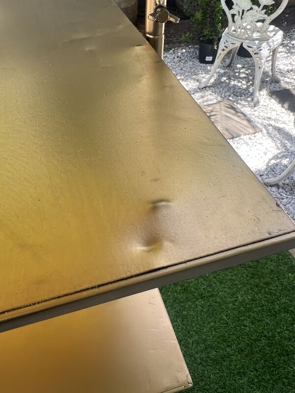FACTORY SECONDS: THE STABILITY AND PAINT QUALITY OF THIS PRODUCT IS NOT PERFECT IN OUR CURRENT BATCH. PLEASE VIEW ALL IMAGES TO SEE SOME OF THE PROBLEMS THAT YOU MAY RECEIVE ON THIS PRODUCT. Must be used against a wall and not recommended for glassware/drinks. Selling as Factory Seconds discounted pricing due to the paint and stability issues. No refunds or returns accepted on this product