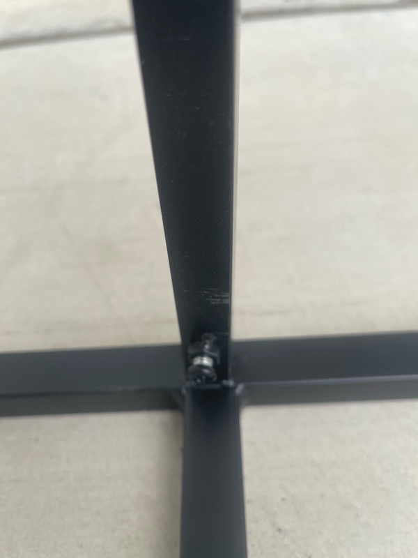 The stand may need to have the weld gently pushed into position if it does not stand straight when you first erect it. This normal and will not break the stand