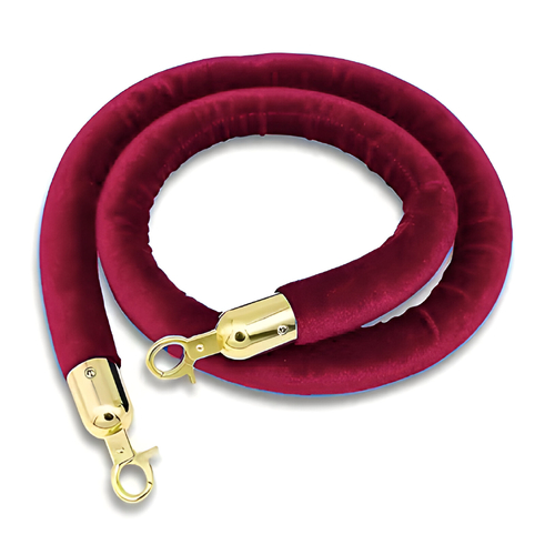 Burgundy with Gold Hook - Velvet Cord Rope for Bollards and Stanchions
