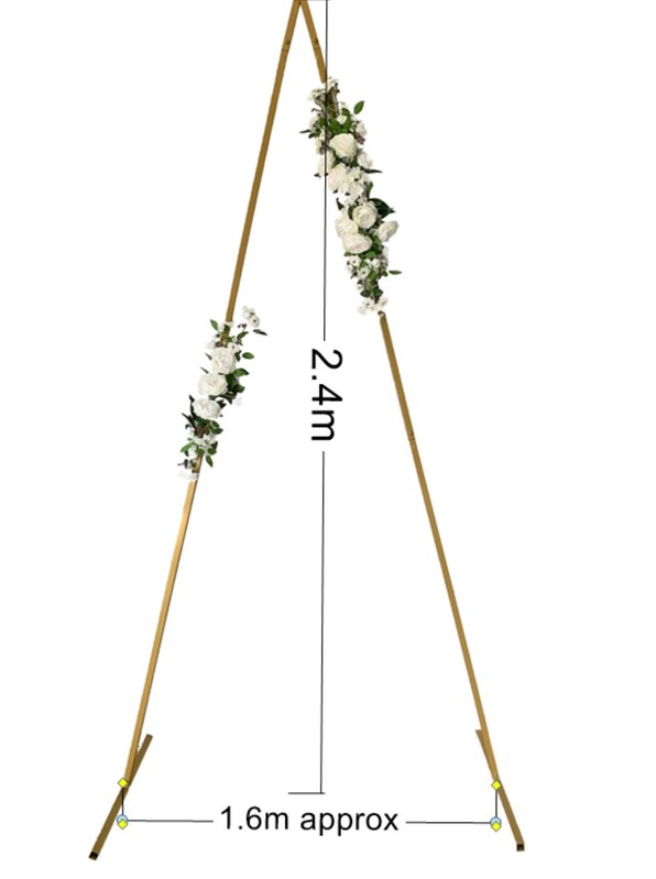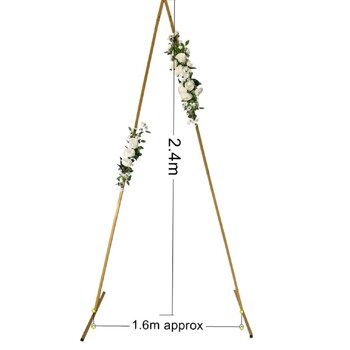 Size: Approx 2.4m high and wide, x 1.6m wide. You can adjust the legs to make the arch narrower, the measurement given is the widest point before the feet roll to much