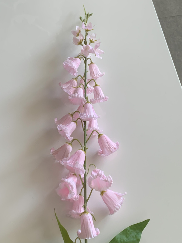 Standing tall and graceful at 100cm, our artificial pink foxglove stem brings a touch of whimsical enchantment to your wedding décor or home. Picture a cascade of 21 pink blossoms, each one crafted from soft fabric. The larger blooms at the base boast a charming 3cm diameter and 4cm depth, gradually shrinking as they ascend the stem like a delicate fairytale ladder. Nestled amidst these beauties are 8 petite flowers, just 2cm in diameter, adding a touch of playful charm.