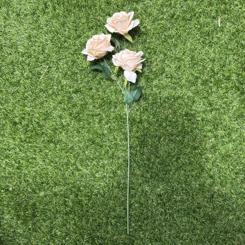Add a touch of classic beauty to your floral arrangements with our 3-head Peach artificial rose stem. Designed for versatility, this stem features three rose heads, each measuring approximately 8cm in diameter (unreflexed). With fabric flowers and leaves, along with plastic-coated wire stems, this piece offers both flexibility and durability.