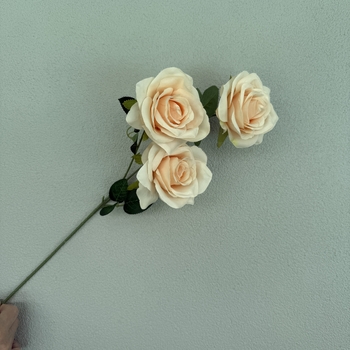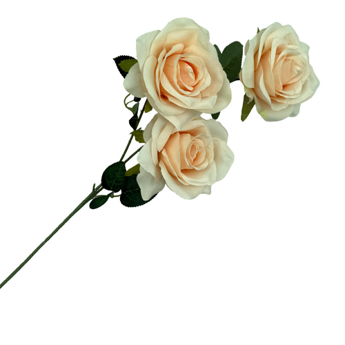 65cm - 3 Head Open Rose Flower Stem - Peach