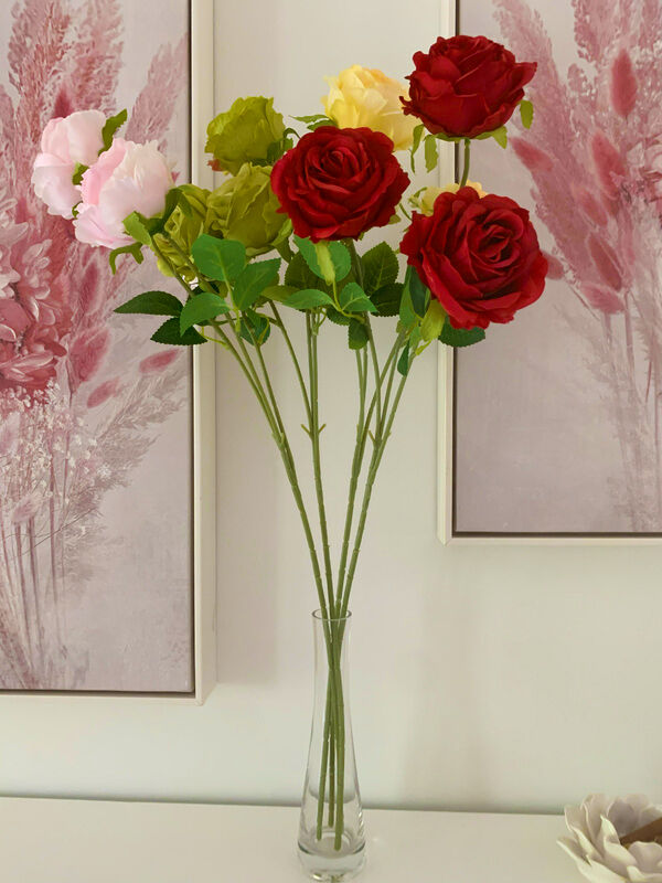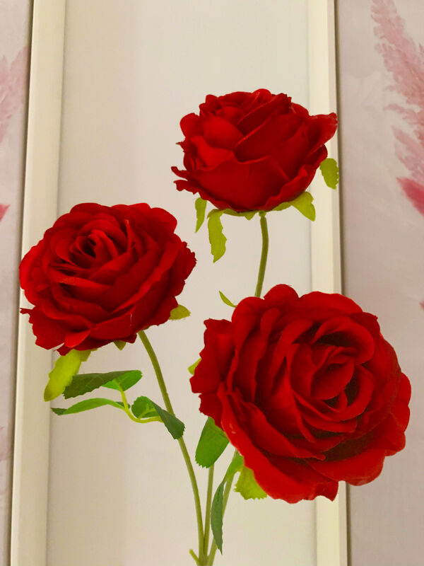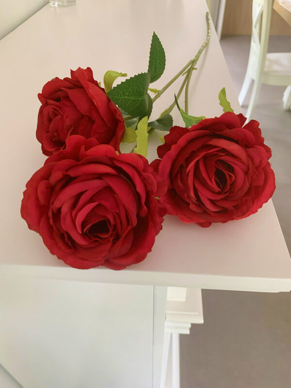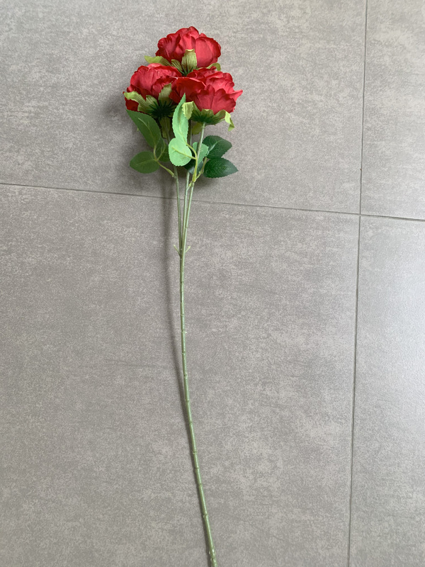 65cm - 3 Head Rose Flower Stem - Red