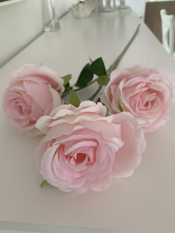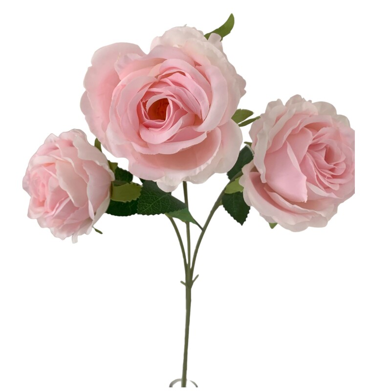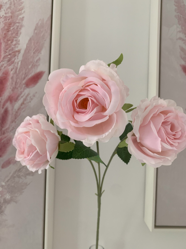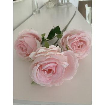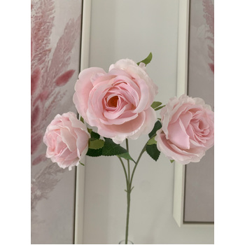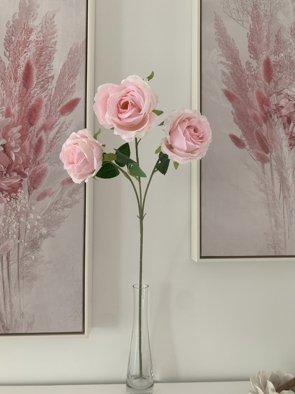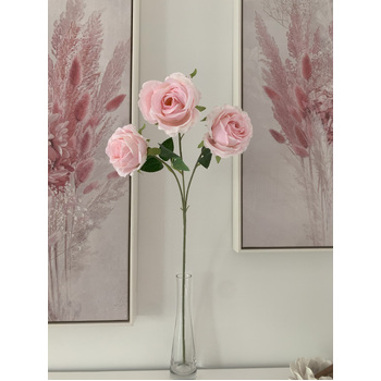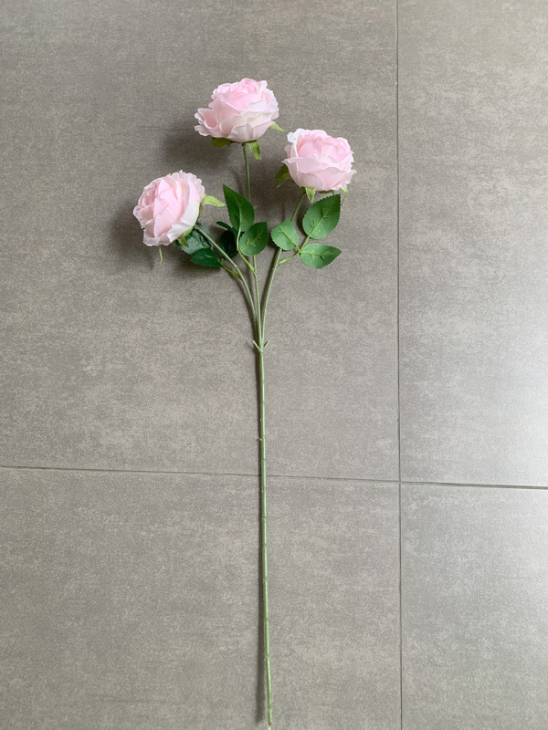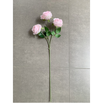 65cm - 3 Head Rose Flower Stem - Soft Pink
