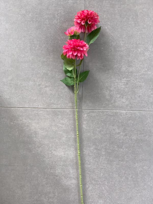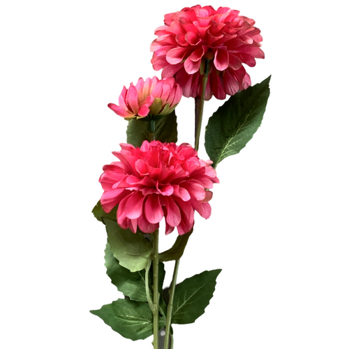 75cm - 3 Head Dahlia Flower Stem - Fushia
