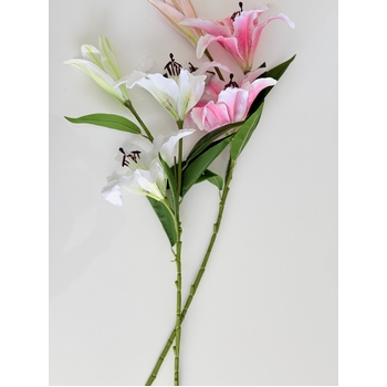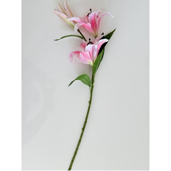 Artificial 3 Head Lily Stem - Pink - 75cm