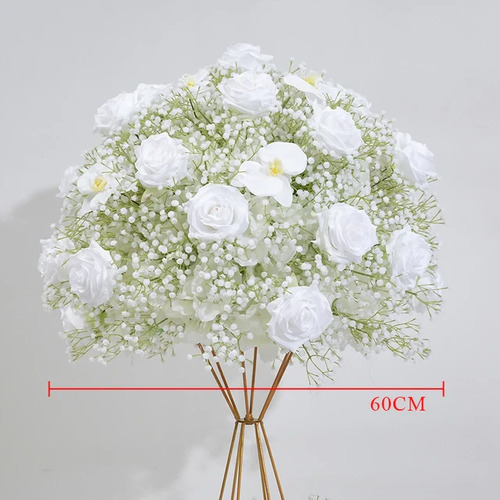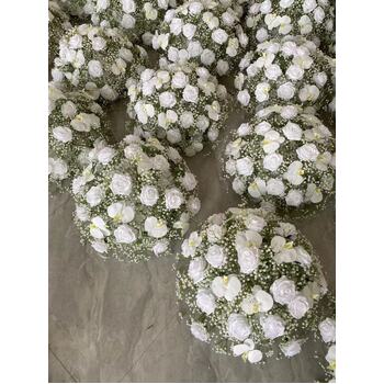 60cm Rose, Orchid and Babies Breath Flower Ball Arrangement - White