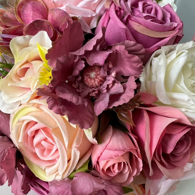 Complete your bridal look with the vibrant charm of our Pink, Mauves, & Peach Bridal Posy Bouquet.