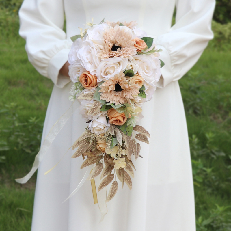 Bridal Teardrop Bouquet - Burnt Orange, Ivory, Tan Naturals