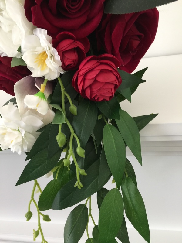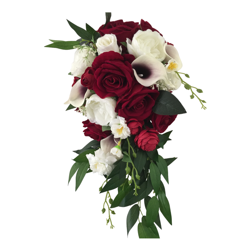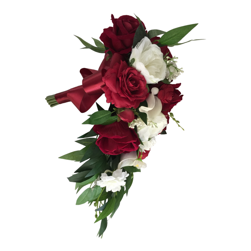 Bridal Teardrop Bouquet - Deep Red/White