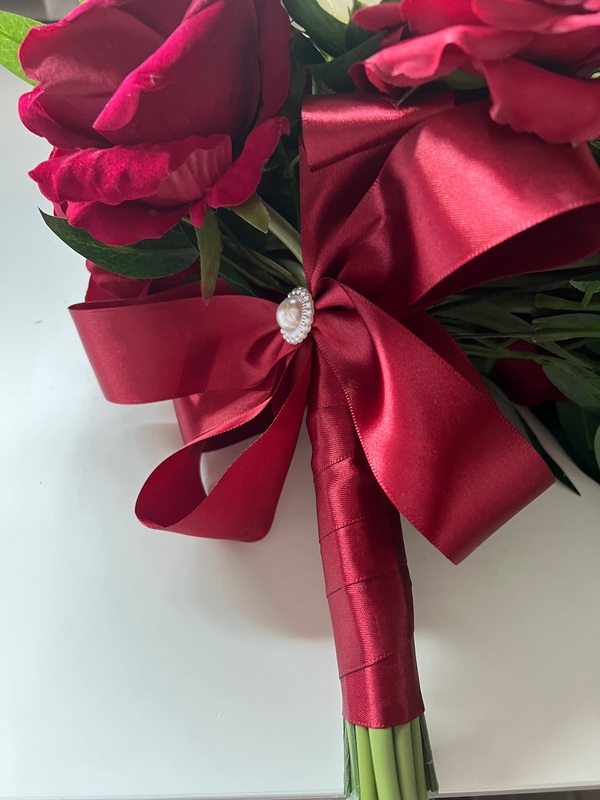 Stems: hand-tied with red satin ribbon with a bow ( No tails)