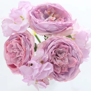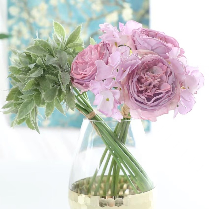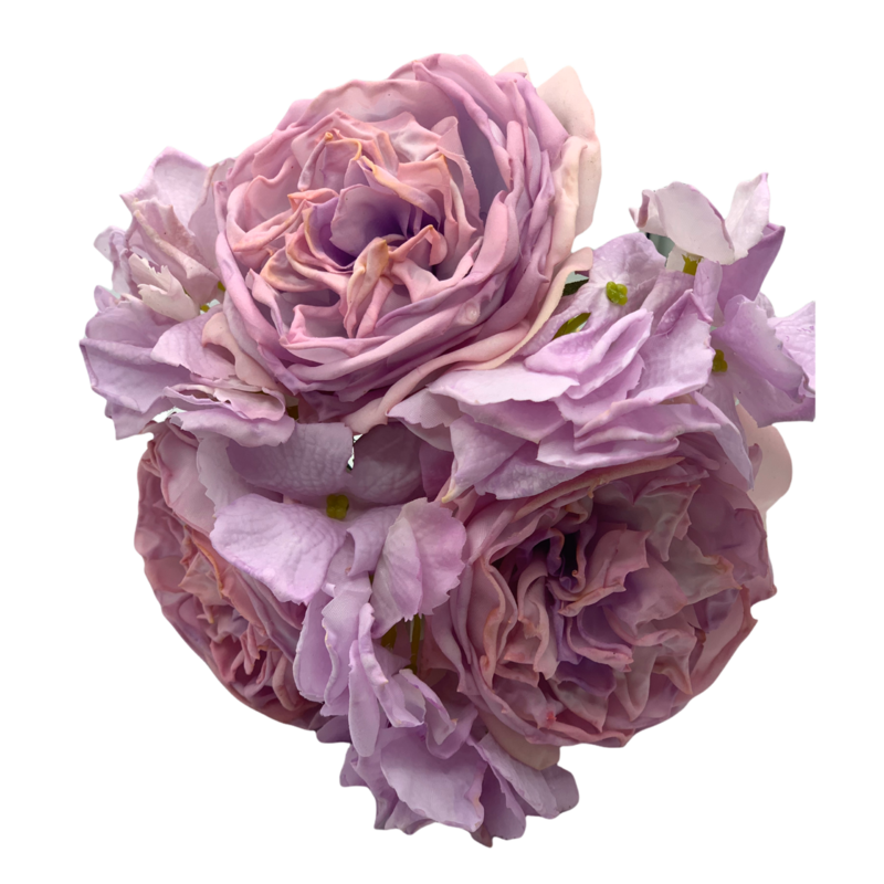 Cottage Rose & Hydrangea Bouquet - Lavender - Real Touch