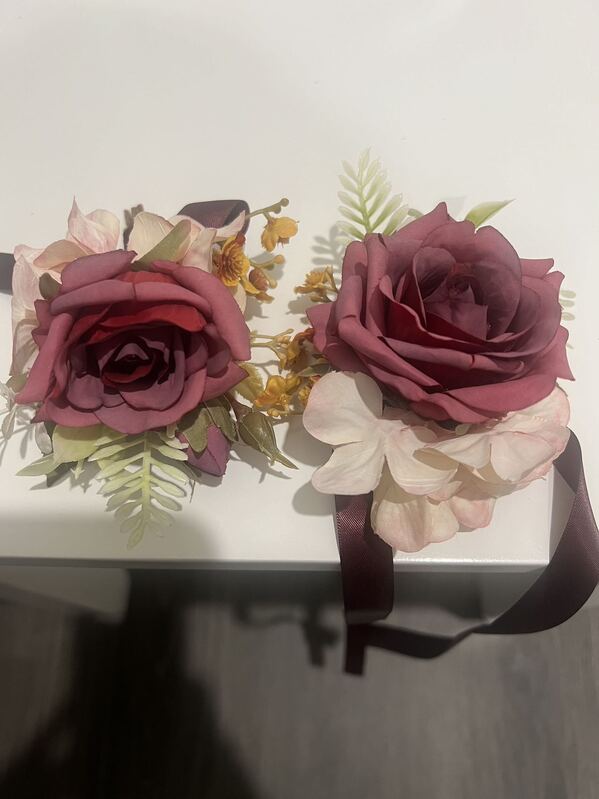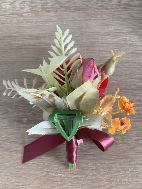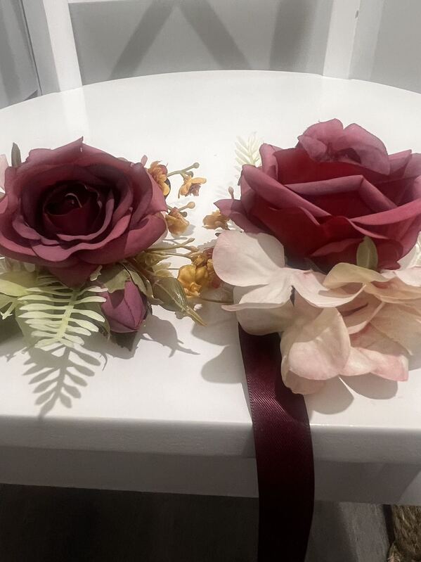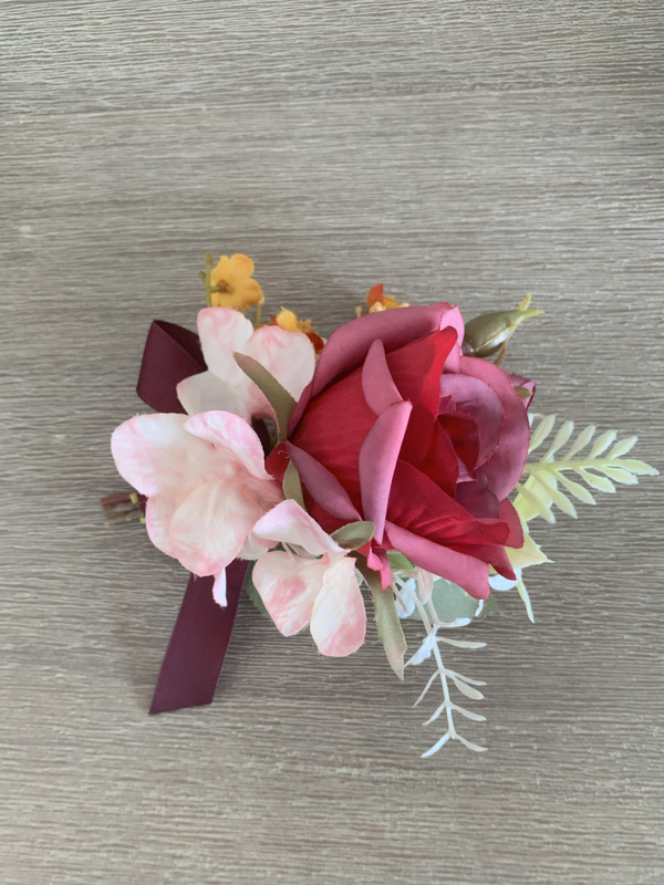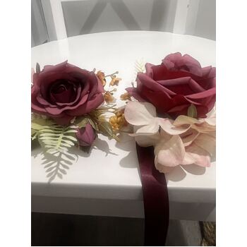 MATCHING CORSAGE AVAILABLE IN THIS DESIGN - very difficult to photograph. The petals are burgundy on the outside and a light eggplant (plum) on the inside with burgundy ribbons