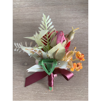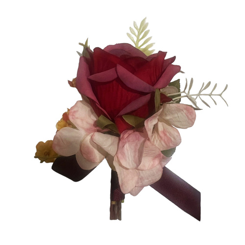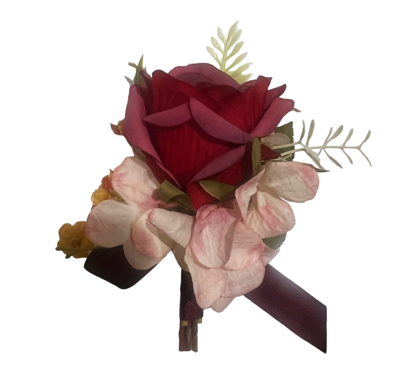Add a touch of tradition to your wedding or special occasion attire with this classic Buttonhole. Featuring one large rose (one open at 7cm diameter ), delicate greenery, and hydrangea filler flowers. The standard pin on the back ensures easy and secure attachment, while a satin-wrapped stem adds a touch of sophistication.