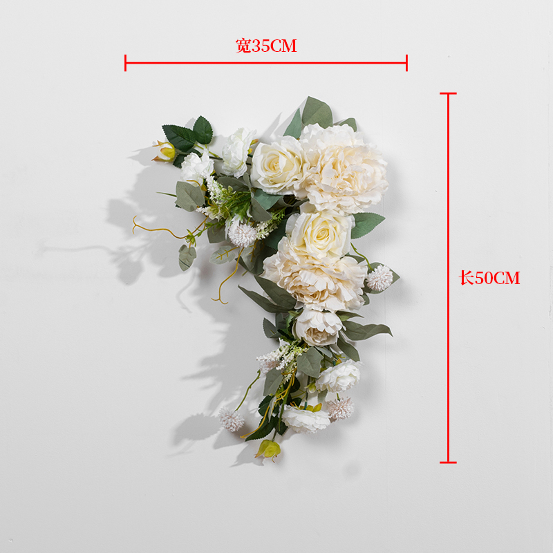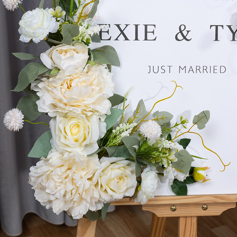 2pc Set - White/Cream Rose & Silver Dollar Floral Arch/Sign Corner Arrangment
