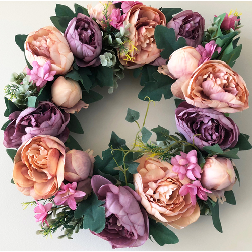 40cm High Quality Wreath - Peach/Mauve European Peonies