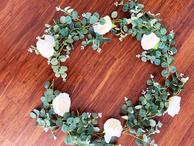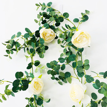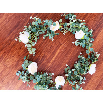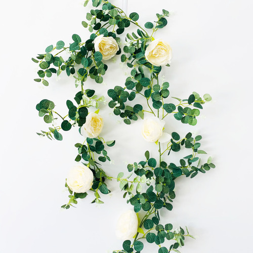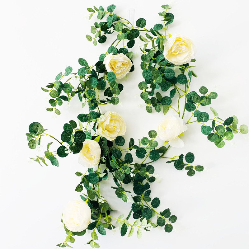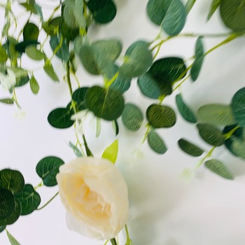 Length: 1.85m approx Eucalyptus Dollar leaves & Cream Peony Rose