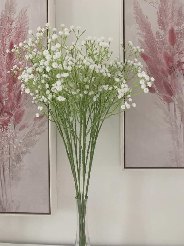 Please note: Each order includes one stem, measuring 62cm in length, with approximately 108 heads of Plastic Baby's Breath flowers , split across 4 branches, allowing for a multitude of creative possibilities. These are budget quality and there may be a few flowers fall off on unpacking.