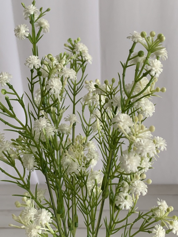 Add a touch of airy elegance to your floral arrangements with our 34cm Babies Breath/Gypsophila Filler Spray. This versatile spray features delicate clusters of tiny flowers on a flexible plastic wired stem, perfect for adding softness and texture to bouquets, centerpieces, and more.