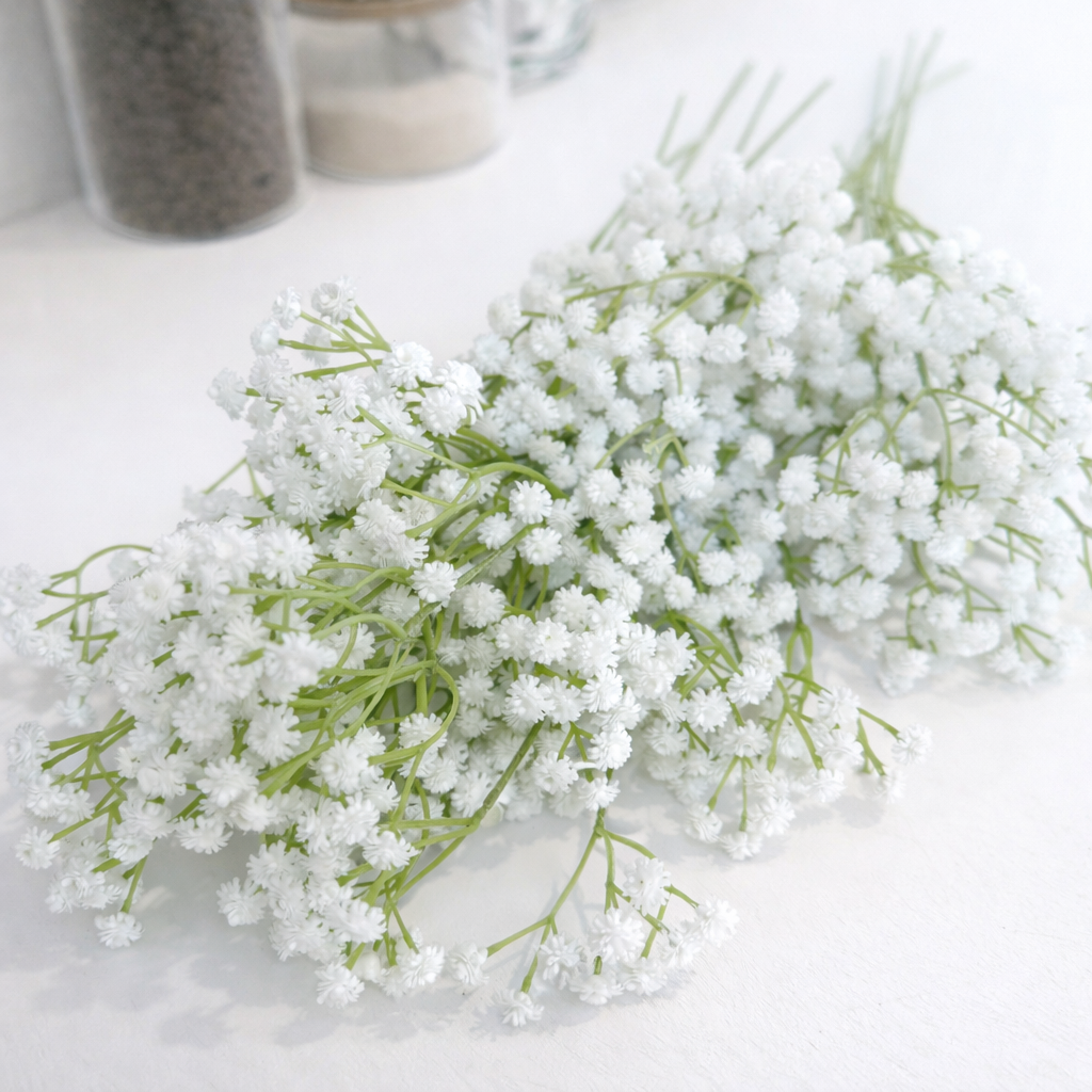 This artificial baby’s breath stem is ideal for bridal bouquets, bridesmaid flowers, centrepieces, flower crowns, hair decorations, ceremony styling, and event installations. It works beautifully as a filler flower alongside roses, peonies, and hydrangeas.