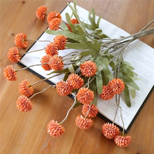 This Burnt Orange Mini Artificial Chrysanthemum Pom Stem is an affordable floral option for styling wedding arrangements, event displays, or home décor. Featuring five small flower heads and realistic foliage, it’s a practical choice for budget-conscious decorating.